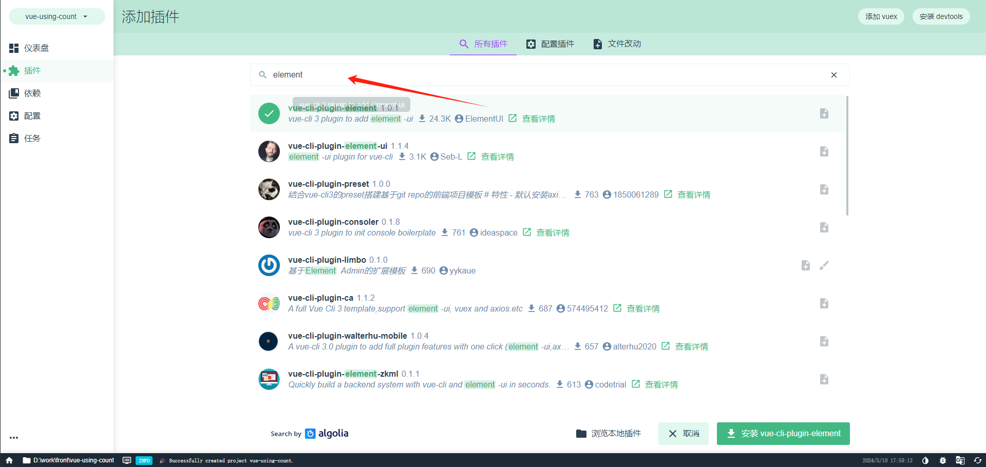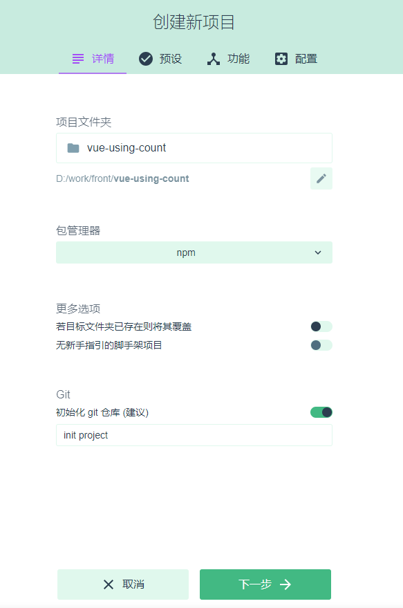 2.执行命令后会自动跳转到初始化项目的页面,如下图操作