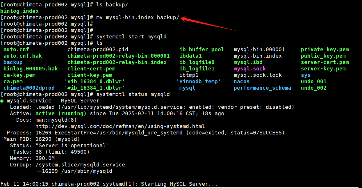 最后mysql一直起不来,其实只要移动下mysql-bin.index的位置就好了